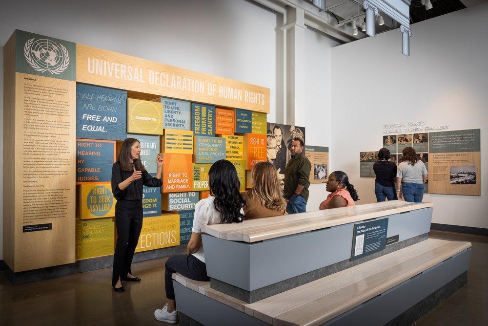 Descubre cómo progresó el mundo en los años posteriores al holocausto a través de instalaciones que invitan a la reflexión y que incluyen el Tribunal Militar Internacional y la creación de la Declaración Universal de los Derechos Humanos.